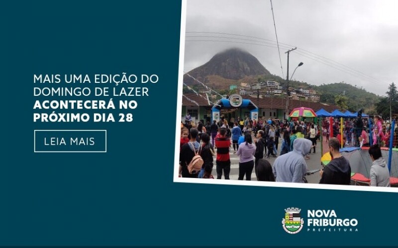 A Prefeitura de Nova Friburgo, através da Secretaria Municipal de Esportes e Lazer, realizará mais uma edição do projeto “Domingo de Lazer”, no próximo dia 28 de agosto. O evento recreativo é aberto para pessoas de todas as idades e acontecerá das 9h às 13h, na Via Expressa, no espaço em frente à Afape, em Olaria.
