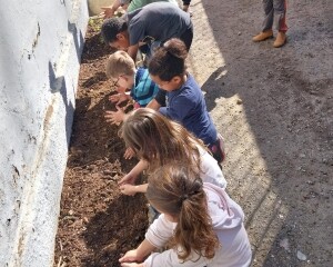 Com conversa informal sobre alimentação saudável e a importância da água, os estudantes regaram a terra, fizeram as covas e plantaram as sementes. Inclusive contoram com uma parceria de sucesso: o pai de um dos alunos, o Leonardo, gentilmente preparou a terra para o plantio e auxiliou durante toda a execução do projeto.