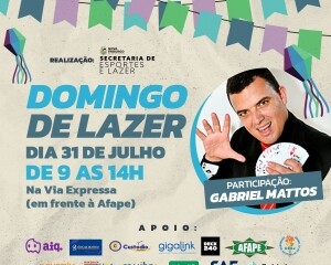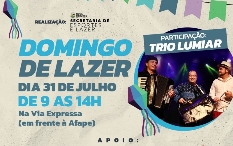 O ‘Domingo de Lazer’ está chegando novamente. A edição de julho será neste domingo, 31, das 9h às 14h, na Via Expressa, em Olaria, com temática julina. Além das tradicionais atividades gratuitas, o evento também contará com a participação do Trio Lumiar e do mágico Gabriel Mattos, levando muita música e diversão.