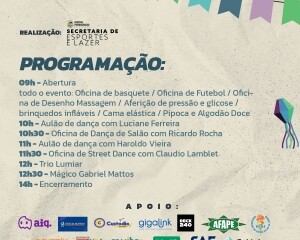 Estão previstos aulões de dança com os professores Haroldo Vieira e Luciane Ferreira, oficinas de dança com os professores Claudio Lamblet e Ricardo Rocha, brinquedos infantis, exposição de carros antigos, algodão doce, pipoca, e espaço livre para atividades em geral. Outras oficinas acontecerão durante todo o evento como de desenho, futebol e basquete, e também serão oferecidos serviços para a população como aferição de pressão arterial e glicose, massagem, entre outros.