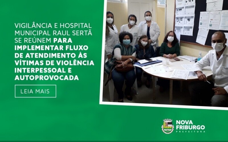 Membros da Subsecretaria de Vigilância em Saúde e da Coordenação de Enfermagem do Hospital Municipal Raul Sertã se reuniram nesta semana para implementar o fluxo de atendimento na unidade para vítimas de violência interpessoal autoprovocada, dentre elas a violência doméstica e tentativa de suicídio.
