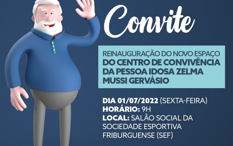 O Centro de Convivência da Pessoa Idosa Zelma Mussi Gervásio, que antes funcionava no Clube de Xadrez oferecendo diversas atividades e serviços de acolhimento voltados aos idosos, já tem data confirmada para a reabertura em novo espaço mais amplo, moderno e seguro. A retomada acontece na próxima sexta-feira, 01 de julho, às 9h, no salão Social da SEF (Sociedade Esportiva Friburguense).