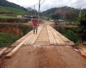 E outra ponte, de 12 metros de extensão e também de 3,50m de largura, foi refeita na localidade de Barracão dos Mendes, na Estrada do Barro Preto. Para esse trabalho foram usadas seis novas vigas, 90 pranchões e 20 quilos de pregos. Robson também lembra que esse serviço foi realizado em um dia pela equipe da Subprefeitura de Campo do Coelho.