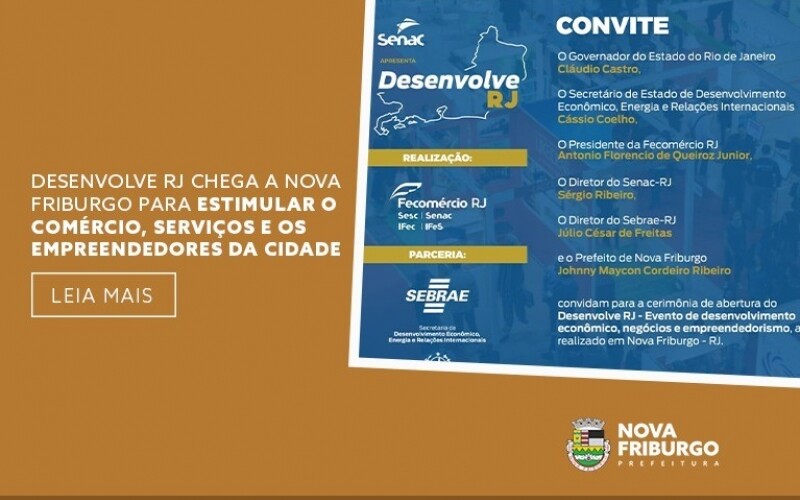 Entres os dias 17 e 19 de junho, no Nova Friburgo Country Club, acontecerá o DESENVOLVE RJ, encontro com objetivo de estimular um ambiente favorável para geração de negócios e o surgimento, a ampliação e a diversificação de empreendimentos sustentáveis. O evento tem a participação de prefeituras, empreendedores, empresas fornecedoras de produtos e serviços, representantes da indústria, comércio e investidores da região. A programação conta com palestras, expositores e Roda de Negócios.