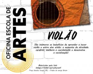 VIOLÃO – São inúmeros os benefícios de aprender a tocar violão. E entre eles estão o aumento da atividade cerebral, melhora da coordenação e socialização. Destinado a crianças e jovens de 7 a 17 anos e as aulas são ministradas às terças-feiras.