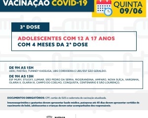 A Secretaria Municipal de Saúde decidiu ampliar a imunização para esse público nesta faixa etária. Na quinta-feira, 09, os adolescentes poderão receber a terceira aplicação nas unidades básicas de saúde da cidade.