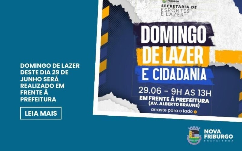 O Domingo de Lazer e Cidadania é uma iniciativa da Prefeitura de Nova Friburgo, por meio da Secretaria Municipal de Esportes e Lazer, com o objetivo de proporcionar atividades recreativas e facilitar o acesso da população a serviços públicos. Além de promover o esporte, a cultura e o lazer, o evento busca fortalecer a convivência familiar e comunitária.