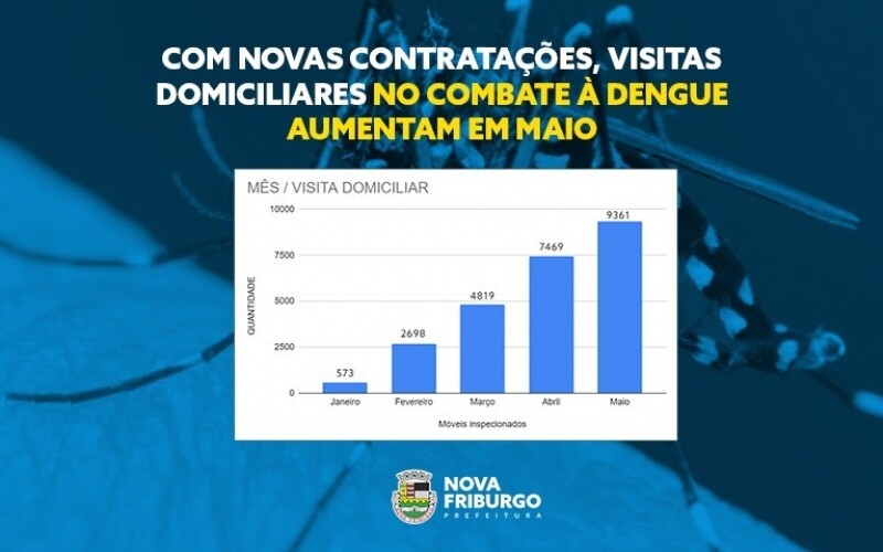 A Prefeitura de Nova Friburgo, através da Secretaria Municipal de Saúde e da Subsecretaria de Vigilância em Saúde, vem realizando o trabalho no combate à dengue. Com o aumento de nove para 38 agentes de combate à endemias, o número de visitas domiciliares nos bairros do município para o controle e prevenção do aedes aegypti, mosquito transmissor de algumas arboviroses, cresceu nos últimos meses.
