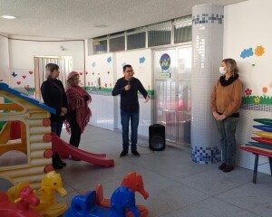Nesta segunda-feira, 30, o prefeito Johnny Maycon iniciou o dia visitando algumas unidades escolares, em Olaria. A primeira parada foi no Centro Educacional Nossa Senhora das Graças, em Olaria, que teve uma nova entrada, exclusivamente para os alunos da Creche Maria José Mafort, entregue num ato simbólico.
