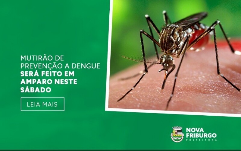 No próximo sábado, 28 de maio, as equipes da Secretaria Municipal de Saúde e da Subsecretaria de Vigilância em Saúde estarão em Amparo realizando um mutirão de prevenção ao mosquito aedes aegypti, transmissor da dengue. As atividades de prevenção e análise das casas serão feitas de forma itinerante, das 9 às 13 horas, no centro de Amparo e no Loteamento Tiradentes.