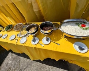 Uma deliciosa refeição foi servida a todas, independentemente se são mães ou não, com entrada, almoço, sobremesa e refrigerante, ao som de música ao vivo.