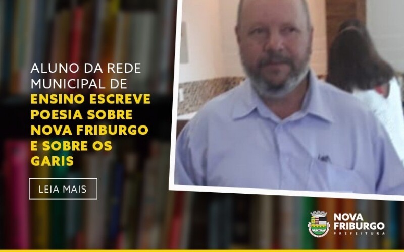 A rede municipal de Educação da Prefeitura de Nova Friburgo é recheada de talentos. Um desses personagens é o aluno da EJA (Educação de Jovens e Adultos) da Escola Municipal Jardel Hottz, o sr. Valter da Silva Ribeiro, de 63 anos. O sr. Valter é um aluno interessado e, percebendo o quanto se identificava com textos e com a escrita, a professora Aline Ferreira foi estimulando sua competência leitora e a sua capacidade de escrever. Inclusive, no ano de 2018, a EJA desenvolveu um projeto sobre poesias com toda a rede. O sr. Valter produziu uma bela poesia homenageando Nova Friburgo, alcançando a 1º colocação em sua categoria. E além disso, o aluno também se destaca com pinturas de quadros, os quais já estiveram em exposição, inclusive na Câmara dos Vereadores.