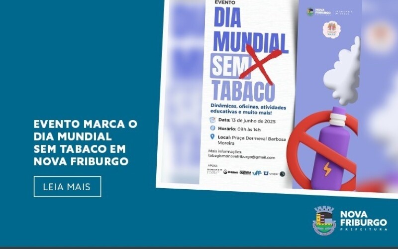 A Prefeitura de Nova Friburgo realizará, no próximo dia 13 de junho, uma mobilização especial em referência ao Dia Mundial Sem Tabaco. O evento acontecerá na Praça Dermeval Barbosa Moreira, das 9h às 14h, com uma série de atividades voltadas à promoção da saúde e à prevenção do uso de produtos derivados do tabaco.