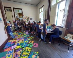 Dando continuidade à programação pelo Dia do Livro, a Biblioteca da Secretaria Municipal de Educação, da Prefeitura de Nova Friburgo, recebeu a escritora infantil e juvenil Maria Clara Cavalcanti, no Centro Educacional Paulo Rónai, nesta terça-feira, 19. Os alunos e as professoras da Escola Municipal Santa Paula Frassinetti, no Centro, puderam usufruir da companhia da autora que realizou a leitura, junto aos estudantes, de uma de suas obras, o livro "O Terrível Guerreiro". A atividade foi desenvolvida por sugestão da própria Biblioteca da SME com as turmas do 4º ano da unidade.