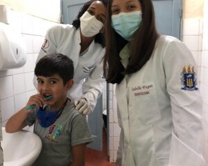 A atividade com as crianças de Riograndina também contou com a presença de duas odontólogas, que são professoras da extinta Faculdade de Odontologia de Nova Friburgo (FONF), acompanhadas de cinco estagiários de odontologia da Universidade Federal Fluminense (UFF).