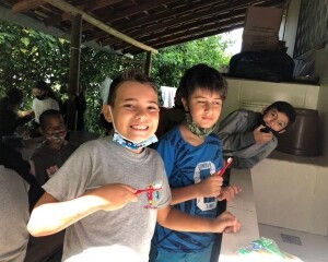 Um KIT de higiene bucal contendo creme dental, escova de dente e fio dental foi distribuído para os alunos do colégio. Eles passaram por avaliação para investigação de casos de cárie e participaram de ações de incentivo à escovação.