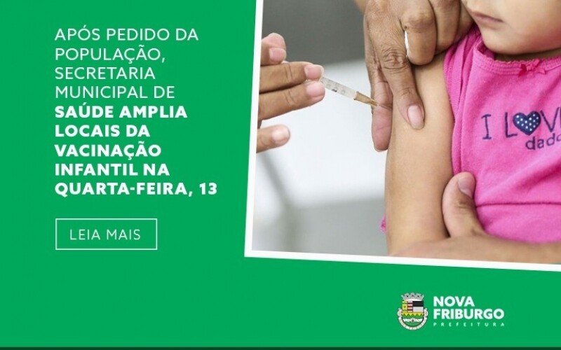 APÓS PEDIDO DA POPULAÇÃO, SECRETARIA MUNICIPAL DE SAÚDE AMPLIA LOCAIS DA VACINAÇÃO INFANTIL NA QUARTA-FEIRA, 13