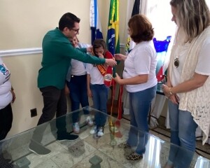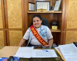 O prefeito Johnny Maycon recebeu no gabinete na última sexta-feira, 8, as alunas participantes do projeto Diretor Mirim, realizado pela Escola Estadual Municipalizada Amâncio Azevedo, no bairro Cascatinha. Foi realizada uma votação na escola, com três chapas concorrendo, e com um total de 120 votantes, a chapa vencedora foi a composta pela nova diretora mirim Emanuelly de Oliveira Gomes e a nova vice-diretora Ana Lívia Galhardo Gonçalves. Além das presenças do prefeito, da primeira dama Lorrayne Ribeiro, da Emanuelly e da Ana Lívia, a secretária de Educação Caroline Klein, a diretora da escola Cláudia de Lima Andrade e professores da unidade também estiveram presentes na ocasião.