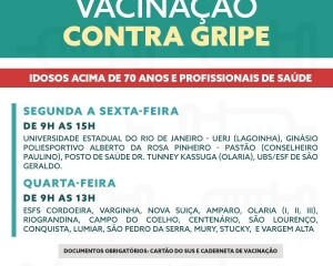 A Prefeitura de Nova Friburgo, por meio da Secretaria Municipal de Saúde, realizará a imunização contra a gripe dos idosos com mais de 70 anos e profissionais de saúde na próxima semana.