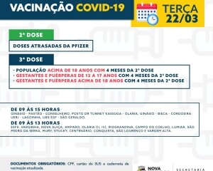Ainda sobre imunização para toda a população, a Prefeitura realizará uma repescagem de primeira e segunda dose, na sexta-feira, 25, para os adolescentes com 12 a 17 anos, gestantes, puérperas e adultos acima de 18.