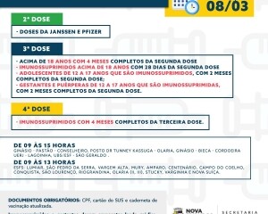A quarta dose continua sendo feita para os imunossuprimidos, que é o único grupo que possui autorização para esta fase da vacinação. Já o reforço da terceira dose será oferecido a todos com mais de 18 anos que possuem quatro meses da aplicação da segunda dose e para os grupos prioritários, que possuem intervalo mais curto entre as vacinas.