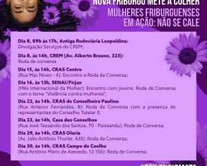 Durante todo mês de março a Secretaria de Assistência Social, Direitos Humanos, Trabalho e Políticas Públicas para Juventude vai promover uma extensa programação voltada para as mulheres, em razão do Dia Internacional da Mulher, a ser comemorado no próximo dia 8. O tema das ações planejadas pela pasta é "Violência Contra a Mulher Nova Friburgo Mete a Colher - Mulheres Friburguenses em ação: Não se cale".