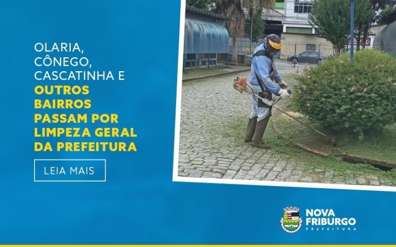 O serviço de roçada, capina, retirada de entulho descartado irregularmente nas ruas, varrição e limpeza em geral, além de desobstrução de bueiros e manilhas não param por toda a cidade. O mesmo acontece na área de abrangência da Subprefeitura de Olaria, Cônego e Cascatinha, conforme cronograma traçado entre o prefeito Johnny Maycon com o subprefeito Matiel Gonçalves.