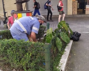 Reforçando as equipes de jardinagem, cinco jardineiros já estão trabalhando na manutenção dos canteiros da Praça Getúlio Vargas e da Avenida Alberto Braune. “Começamos a dar uma geral nos jardins da Praça Getúlio Vargas e na Alberto Braune, cuidando dos canteiros pra melhorar e realmente embelezar a nossa cidade”, destacou Eduardo.
