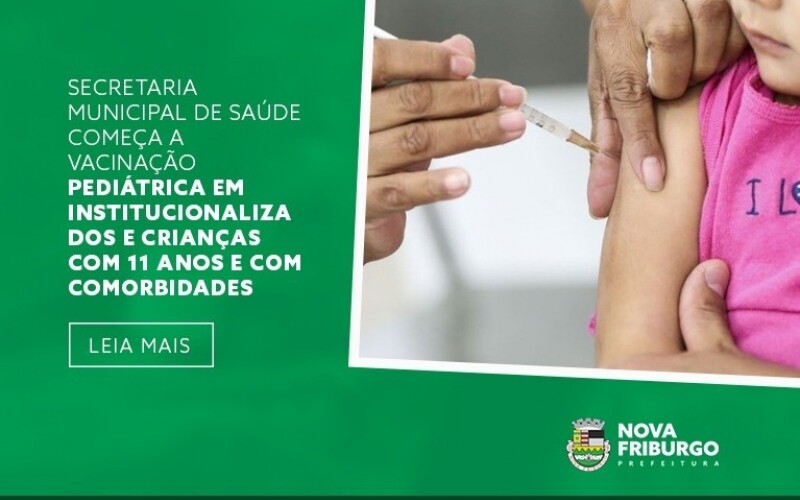Com as 940 doses recebidas pelo município durante o último final de semana, a Secretaria Municipal de Saúde realizará a vacinação das crianças com 11 anos com deficiência ou comorbidade em Nova Friburgo, na quarta-feira, 19. As institucionalizadas também receberão o imunizante durante esta semana.