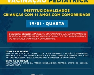 SECRETARIA MUNICIPAL DE SAÚDE COMEÇA A VACINAÇÃO PEDIÁTRICA EM INSTITUCIONALIZADOS E CRIANÇAS COM 11 ANOS E COM COMORBIDADES