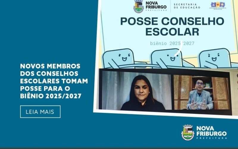 Na última segunda-feira, 12, a Secretaria de Educação da Prefeitura de Nova Friburgo (SEDUC) realizou a solenidade de posse dos novos membros dos Conselhos Escolares, eleitos para o biênio 2025/2027. O evento foi realizado de forma virtual, com transmissão ao vivo pelo canal oficial da SEDUC no YouTube. As eleições unificadas ocorreram no dia 28 de abril, nas próprias unidades escolares.