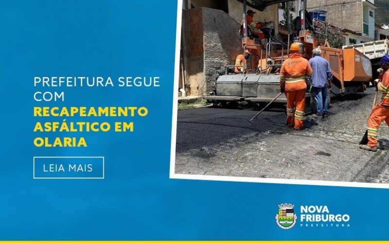 A Prefeitura de Nova Friburgo iniciou no último dia 7 o recapeamento asfáltico na Travessa São Roque, no bairro Olaria. O trabalho está sendo executado pela empresa Novacap Engenharia, Indústria e Comércio Ltda, responsável pelos materiais e mão de obra necessários para realização da pavimentação asfáltica no local.