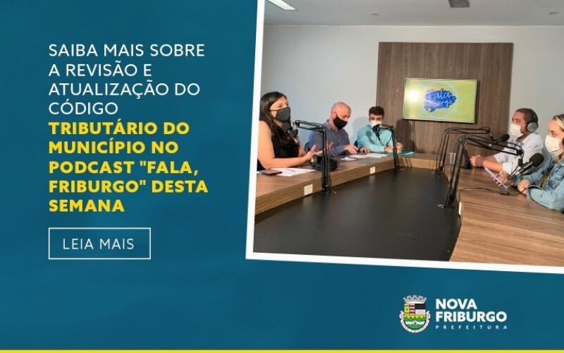 No episódio do podcast "Fala, Friburgo" desta semana, produzido pela Subsecretaria de Comunicação Social (Secom) da Prefeitura de Nova Friburgo, tivemos um time de entrevistados. A secretária de Finanças, Juliana Geraldes; o vereador, Max Bill; e o assessor jurídico, João Paulo Figueiró, falaram sobre a Revisão e Atualização do Código Tributário do Município. Nesta sexta-feira, 10 de dezembro, às 19h, o bate-papo estará disponível no canal da prefeitura no Youtube, além do Spotify.