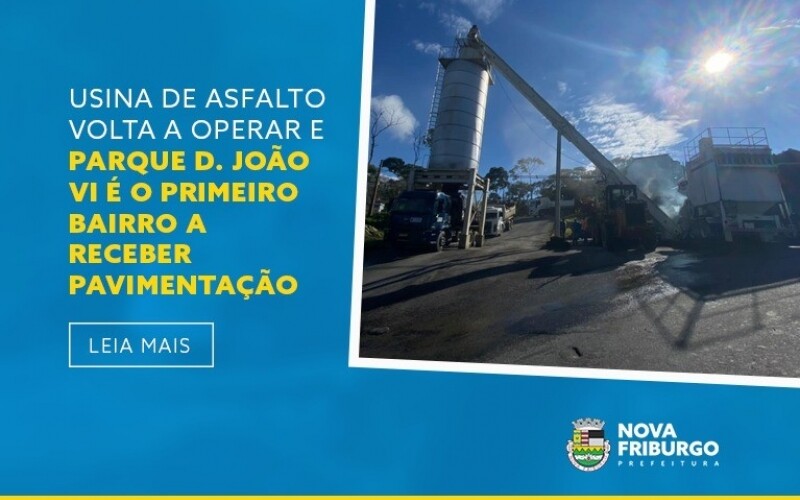 A Usina de Asfalto de Nova Friburgo voltou a operar na manhã desta terça-feira, dia 7, produzindo o asfalto a quente para recapeamento asfáltico no município. Esta etapa do trabalho de recapeamento, proveniente do convênio com o Governo do Estado do Rio de Janeiro, por meio da Secretaria das Cidades e Prefeitura, será executado pela Ômega Construtora e Serviços Ltda., sob supervisão da Secretaria de Obras, atendendo os Parques D. João VI e Imperial.