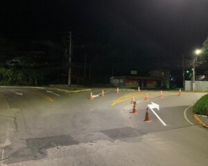 Visando aprimorar a segurança, reduzindo dúvidas e conflitos, a equipe de sinalização horizontal da Smomu realizou nessa noite a demarcação de setas direcionais no acesso entre a Avenida Governador Roberto Silveira e a Rua João Alberto Knust, em Conselheiro Paulino.