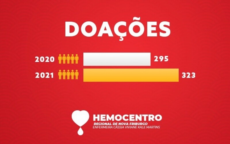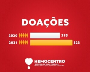 O Hemocentro Regional Enfermeira Cássia Viviane Kale Martins, responsável por atender Nova Friburgo e mais 12 municípios da Região Serrana, recebeu, somente no mês de novembro, 323 doadores. Sendo que, desse número, 149 foram doar pela primeira vez. Em comparação com o mesmo período de 2020, a unidade recebeu 28 doadores a mais neste ano.