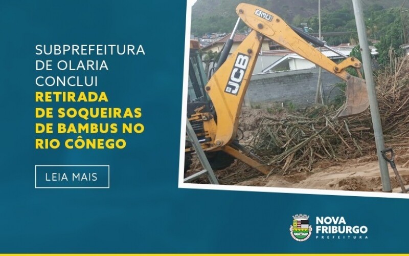 O trabalho diário de limpeza na área de cobertura da Subprefeitura de Olaria, Cônego e Cascatinha continua sendo realizado com todo o empenho da equipe liderada pelo subprefeito Matiel Gonçalves. Têm continuidade também os serviços de manutenção de redes de águas pluviais e de ruas, como ocorreu na segunda quinzena do mês de novembro passado. Além disso, a retirada de uma soqueira de bambus sobre o Rio Cônego teve êxito, depois de muito esforço. O prefeito Johnny Maycon e o vice Serginho Abreu acompanharam esse árduo trabalho.