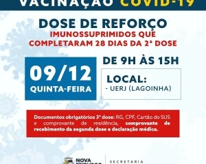 Ainda na quinta-feira, haverá a vacinação de reforço para os imunossuprimidos que já completaram 28 dias da segunda dose. A campanha continuará sendo promovida pela Prefeitura nas próximas semanas, conforme os cidadãos forem completando o período entre as aplicações da vacina.