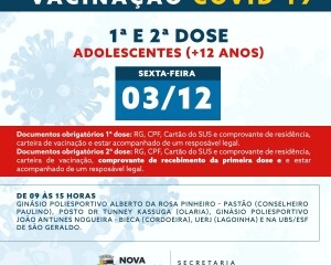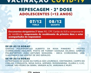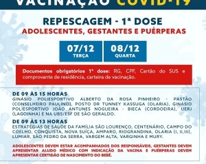 Na terça e quarta-feira, 07 e 08, ainda haverá uma repescagem de primeira dose para adolescentes, grávidas e puérperas em todas as unidades do município.