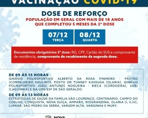 PREFEITURA ABRE VACINAÇÃO DE REFORÇO PARA TODA A POPULAÇÃO COM MAIS DE 18 ANOS QUE TOMOU A SEGUNDA DOSE HÁ CINCO MESES