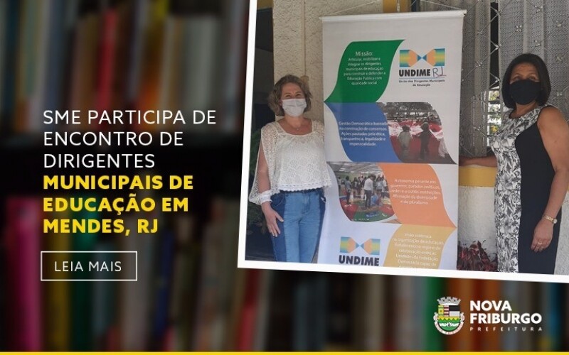 A União dos Dirigentes Municipais de Educação do Estado do Rio de Janeiro (Undime-RJ) realizou nos dias 29 e 30 de novembro o Encontro de Dirigentes Municipais de Educação. O evento ocorreu em formato presencial na Colônia de Professores, em Mendes-RJ, com apoio da Secretaria de Educação do município. Representando a Secretaria Municipal de Educação da Prefeitura de Nova Friburgo, a assistente técnica da pasta, professora Rita Silva, e a coordenadora dos Programas Federais PAR (Plano de Ações Articuladas), Alexandra Barroso Leal, compareceram ao evento.