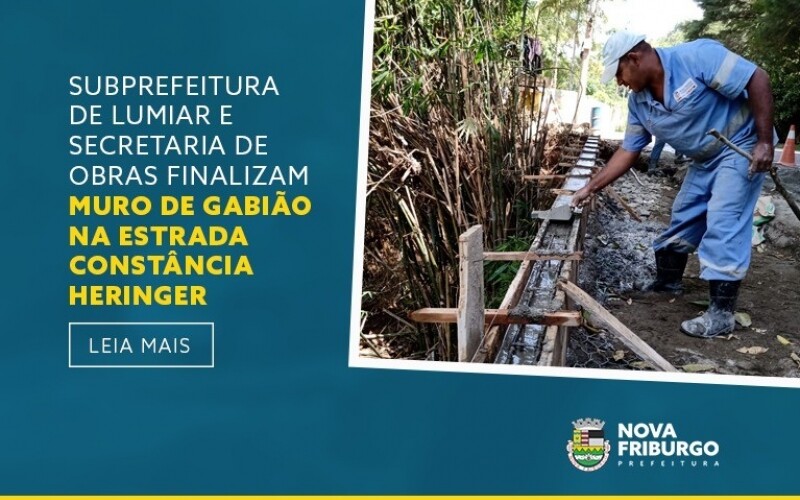 A Prefeitura de Nova Friburgo, através de uma parceria entre a Subprefeitura de Lumiar e São Pedro da Serra e a Secretaria Municipal de Obras, concluiu recentemente a construção de um muro de gabião na Estrada Constância Henringer, popularmente conhecida como Estrada Lumiar – São Pedro, na altura da localidade de Saldanha.