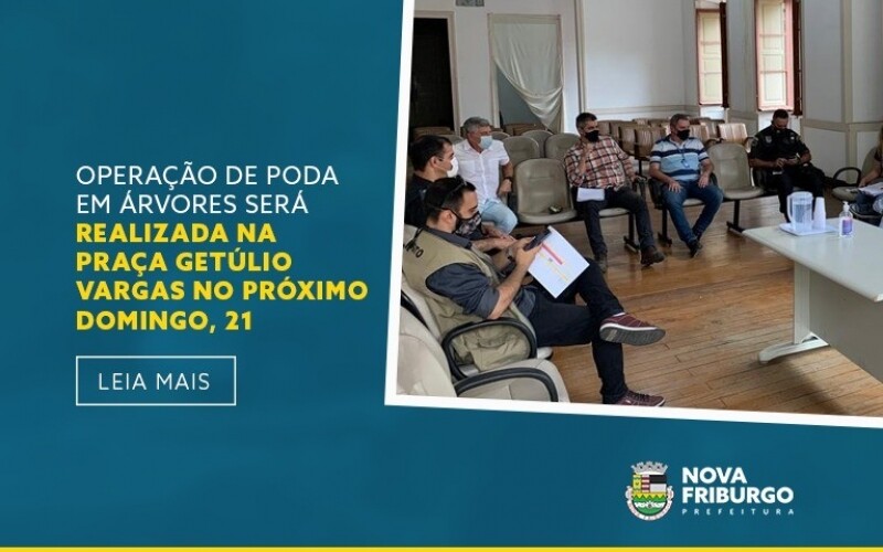 A Prefeitura de Nova Friburgo e 6º Grupamento de Bombeiros Militar farão uma ação conjunta de poda em eucaliptos da Praça Getúlio Vargas no próximo domingo, dia 21, das 7h às 12h. Ao todo, 11 árvores foram identificadas por equipe técnica e laudo da Universidade Rural para receberem os cortes de galhos. A ação vai demandar intervenções específicas no trânsito de veículos no entorno da praça.