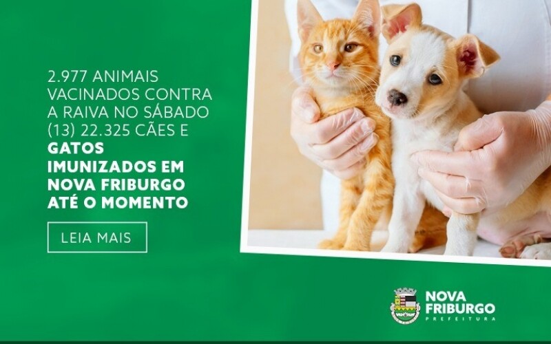 No último dia 13 de novembro, 2.977 animais foram vacinados contra a raiva, durante o Dia D, promovido pela Secretaria Municipal de Saúde e Subsecretaria de Vigilância em Saúde, em Nova Friburgo.