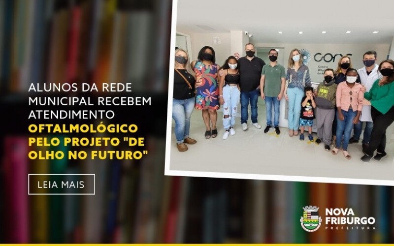O projeto "De Olho no Futuro", que visa a assistência oftalmológica gratuita aos alunos da rede municipal de ensino, é fruto da parceria firmada desde 2003 entre a Secretaria Municipal de Educação da Prefeitura de Nova Friburgo com o Rotary Clube de Nova Friburgo, coordenado por Márcia Carestiato. Neste sábado, 6, foi realizada a primeira etapa do programa, que é o exame de vista para os estudantes no Centro Oftalmológico de Nova Friburgo, no Centro. Neste ano, ao todo, 52 alunos, de 24 unidades escolares, foram selecionados para o atendimento pelo projeto. A SME também distribuiu um kit com frutas e outros alimentos para os estudantes que foram fazer o exame.