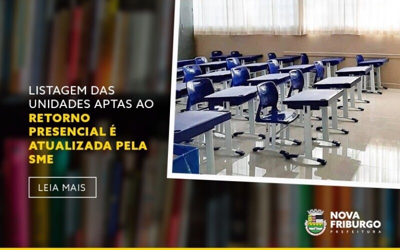 A partir da próxima semana serão 76 unidades escolares municipais aptas ao retorno presencial. A Secretaria Municipal de Educação (SME) da Prefeitura de Nova Friburgo atualiza a listagem semanalmente e, na segunda semana de novembro, retornam as escolas municipais Professor Alberto Meyer, na Granja Spinelli, e Laper Lyra Fagundes, em Lumiar; e o Colégio Municipal Odette Penna Muniz, funcionando junto ao Colégio Estadual Jamil El-Jaick.