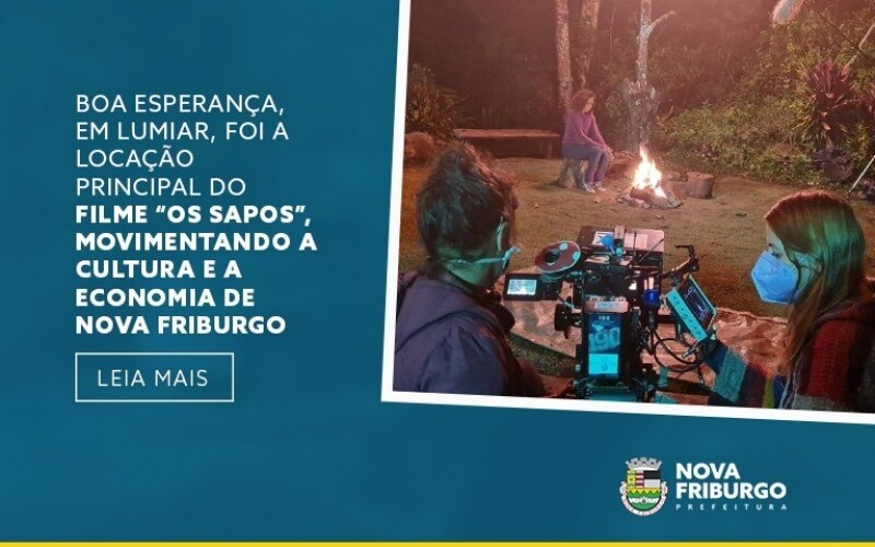 Nova Friburgo é a cidade da moda íntima, das flores de corte, dos rios, cachoeiras, natureza exuberante e… do cinema também, por que não? Terminaram no último fim de semana as gravações do filme “Os Sapos”, escrito por Renata Mizrahi e com direção de Clara Linhart. E a principal locação do filme foi no Sítio Dois Irmãos, na bucólica localidade de Boa Esperança, no distrito de Lumiar.