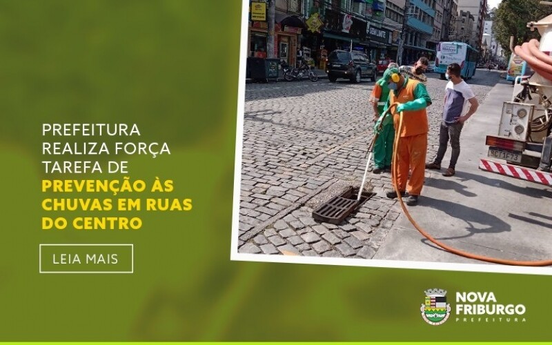 No último sábado, 02 de outubro, a Prefeitura de Nova Friburgo deu continuidade às ações de prevenção de alagamentos que penalizam diversas regiões do município em períodos chuvosos. Desta vez o foco foi o centro da cidade. Através das secretarias de Governo, Serviços Públicos, Obras e Ordem e Mobilidade Urbana (incluindo a Guarda Civil Municipal), a força-tarefa realizou a vistoria e limpeza de bueiros e galerias pluviais. O objetivo é melhorar o escoamento da água da chuva.