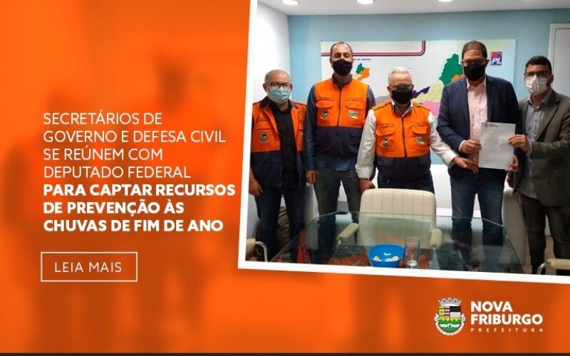Na tarde desta quinta-feira, 23, o secretário de Governo da Prefeitura de Nova Friburgo, Marcinho Alves, e de Defesa Civil, Evi Gomes, se reuniram com o deputado federal Altineu Côrtes (PL), no Rio de Janeiro, para apresentar projetos visando ações preventivas para a época das chuvas. Também estiveram presentes o tenente Luciano Luiz e o gestor de processos, Luiz Carlos, da Defesa Civil.