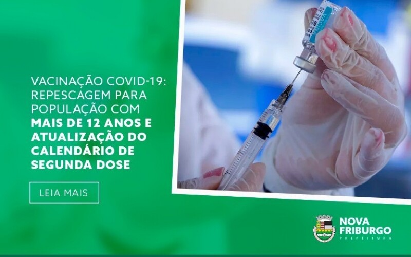 A Prefeitura de Nova Friburgo, por meio da Secretaria Municipal de Saúde, realizará na próxima semana a repescagem da primeira dose da vacina contra a covid-19 para quem ainda não recebeu o imunizante na cidade. Na segunda, 27 a população com mais de 18 anos poderá procurar qualquer um dos postos de vacinação do município para receber a primeira dose.